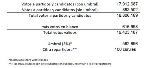 Obviamente que vamos a hacer el ejercicio que predicamos en el texto anterior, para mostrar la razón fundamental de no votar por partidos que no iban a pasar el umbral.