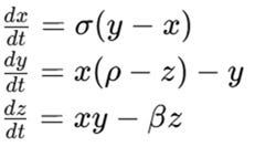 Lorenz partió de la formulación simplificada de Saltzman (1962), quien había derivado una versión reducida de las ecuaciones de Navier–Stokes para la convección térmica, y aplicó una truncación de Fourier que dejó solo tres modos. Las siguientes son el sistema Lorenz, el sistema de 3 ecuaciones diferenciales no lineales que dio origen a su teoría del caos: