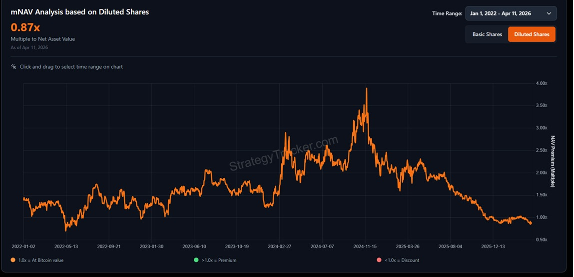Obviamente que no todos los detractores vienen cargados de desprecio, rabia y halitosis de envidia. Los hay también serios y sin carga emocional. Y el argumento central de estas personas es que la emisión de acciones solo es acrecitiva cuando el mNAV es mayor a 1. Y como hoy está por debajo de 1, significa que Saylor no puede usar su herramienta más poderosa sin destruir BTC por acción. Válido.