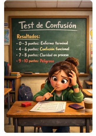 Advertencia (importante): Si te saltaste las preguntas y fuiste directo a las respuestas al final, ya tienes el resultado. Estás en el nivel máximo de confusión. Porque acabas de demostrar algo peor que no entender: que te haces trampa a ti mismo. Y el que se hace trampa a sí mismo es el más confundido de todos porque ya no necesita que nadie lo engañe, se encarga solito de hacerlo.