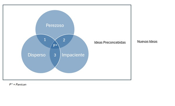 En la intersección de esos tres comportamientos se revela el verdadero autosabotaje, esa triada nefasta que impide el desarrollo. Ese personaje que es a la vez perezoso, impaciente y disperso queda muy bien descrito por el “Panican”. Este término lo volvió famoso Donald Trump recientemente, un término que se puede considerar un insulto peyorativo, una mezcla de panic (pánico) y American, utilizado para ridiculizar a quienes expresan preocupación o pánico económico ante sus políticas, sugiriendo a la vez que un Panican es una persona débil, poco inteligente y sin criterio. En el modo productivo, un Panican es una persona irreflexiva y sin auto control que tiende a sobre reaccionar de manera negativa y exagerada ante situaciones medianamente retadoras, por lo tanto tomando decisiones equivocadas y contraproducentes.